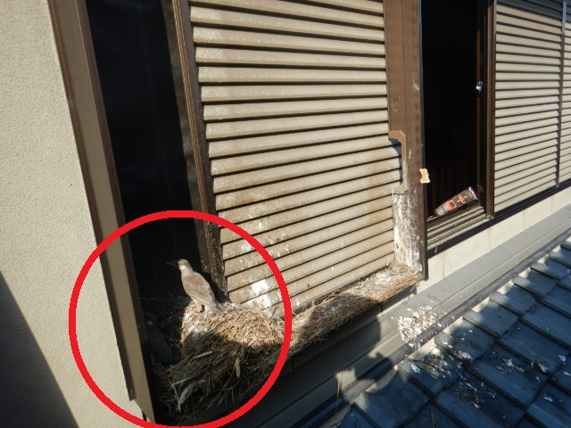 ムクドリが戸袋内に作った営巣