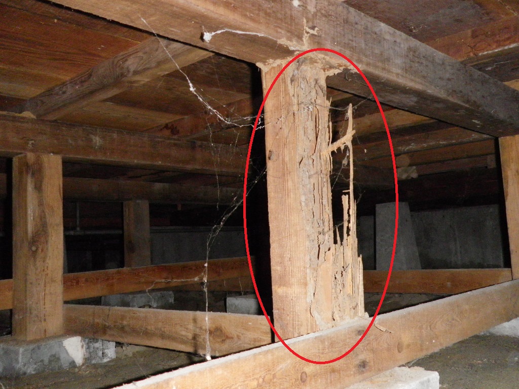白アリによる床下の束柱被害